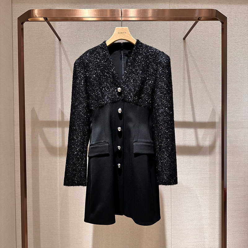 V-neck single-breasted shimmering fabric elegant dress